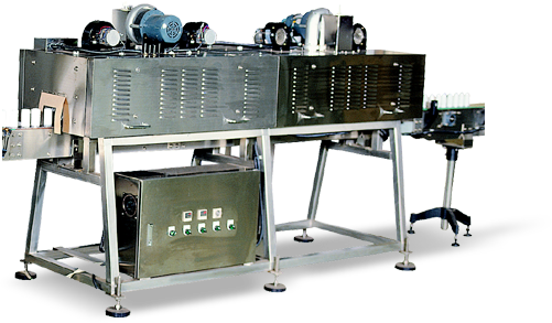 필름 수축기의 가장 일반적인 방식은 열풍 타입으로 생산 제품의 특성과 용도에 맞춰 다양한 모델의 수축기가 있다. Heater에 의해서 발생된 열은 Blower를 통하여 내부에서 순환하는 구조로 설계되어 열손실을 최소화 하였다.